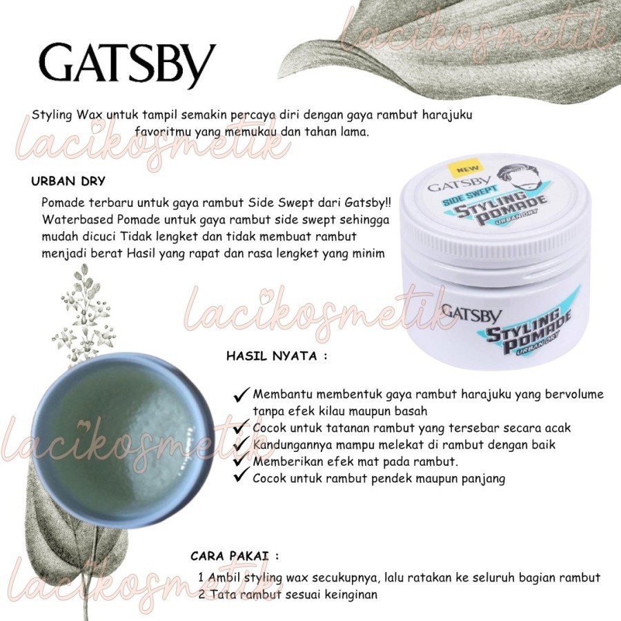 50 x 148mm kode barang: Berbicara mengenai gaya rambut mamang tak lepas dari cara pemotongan rambut yang baik, gaya rambut yang kita inginkan biasanya di dapatkan dari inspirasi dan . ✔️ diskon 10% untuk transaksi minimal rp200.000* ✔️ gratis ongkir . Buat lo yang pakai pomade berbasis minyak, kudu tepat cara mencucinya. Nah, dengan menggunakan suavecito hair color wax pomade, . Kalau lo pecinta pomade, lo wajib mencoba gatsby styling pomade. Galih andrianto, product development hair category gatsby, mengatakan pada prinsipnya segala sesuatu yang dipakai berlebih akan berdampak . Mandom | gatsby styling pomade supreme grease. Ambil secukupnya dan ratakan di telapak tangan, sisirkan pada rambut sampai tertata rapi dan mengembang pada bagian depan. Setting spray for hair to be clasic *pomade tipe spray pertama di. Bingung cara styling dan penggunaan product @gatsbycode yang tepat? Oleh karena itu, banyak orang menggunakan pomade untuk menata rambutnya agar lebih. Beli gatsby styling pomade hold 75gr online dengan harga terbaru 2021 di hdmall.